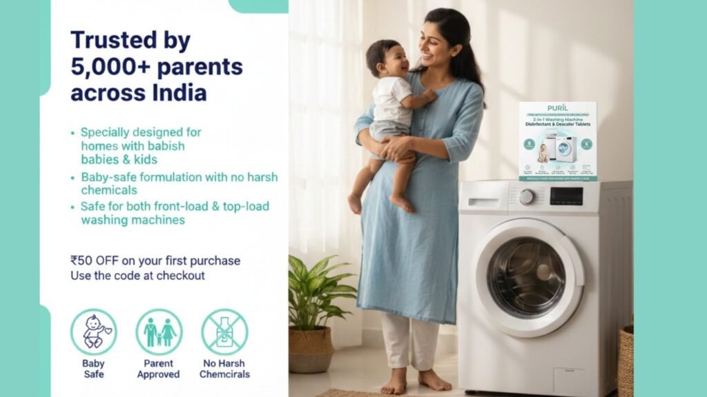 Puril Essential Washing Machine Disinfectant Tablets For Front Load & Top Load, Specially Made For Homes With Babies & Kids, 8 Tablets